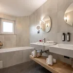 Villa Bellevue Portoroz-Portorose ensures each guest's stay is memorable by providing rooms that boast not only free high-speed Wi-Fi and cable TV but also balconies with sweeping views of the Adriatic Sea. Every apartment offers the comfort of air conditioning, a large LCD cable TV, and options for either a bathtub or a Jacuzzi corner bathtub, ensuring a serene and luxurious stay.